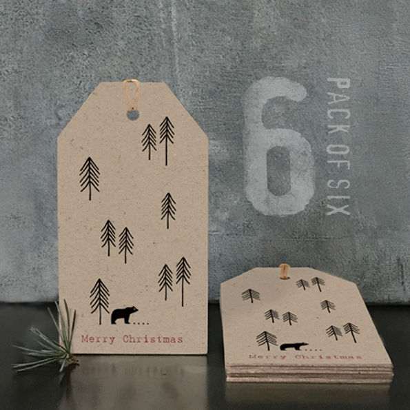 East of India Christmas label gift tag pack of 6, fir trees /polar bear design