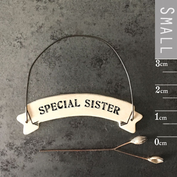 East of India Small ribbon hanger Special Sister for gifting or keepsake
