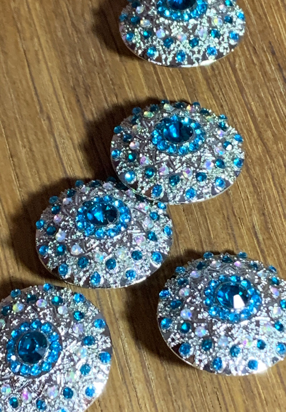 Set of x5 Rose Buttons 15mm, Turquoise, lightweight